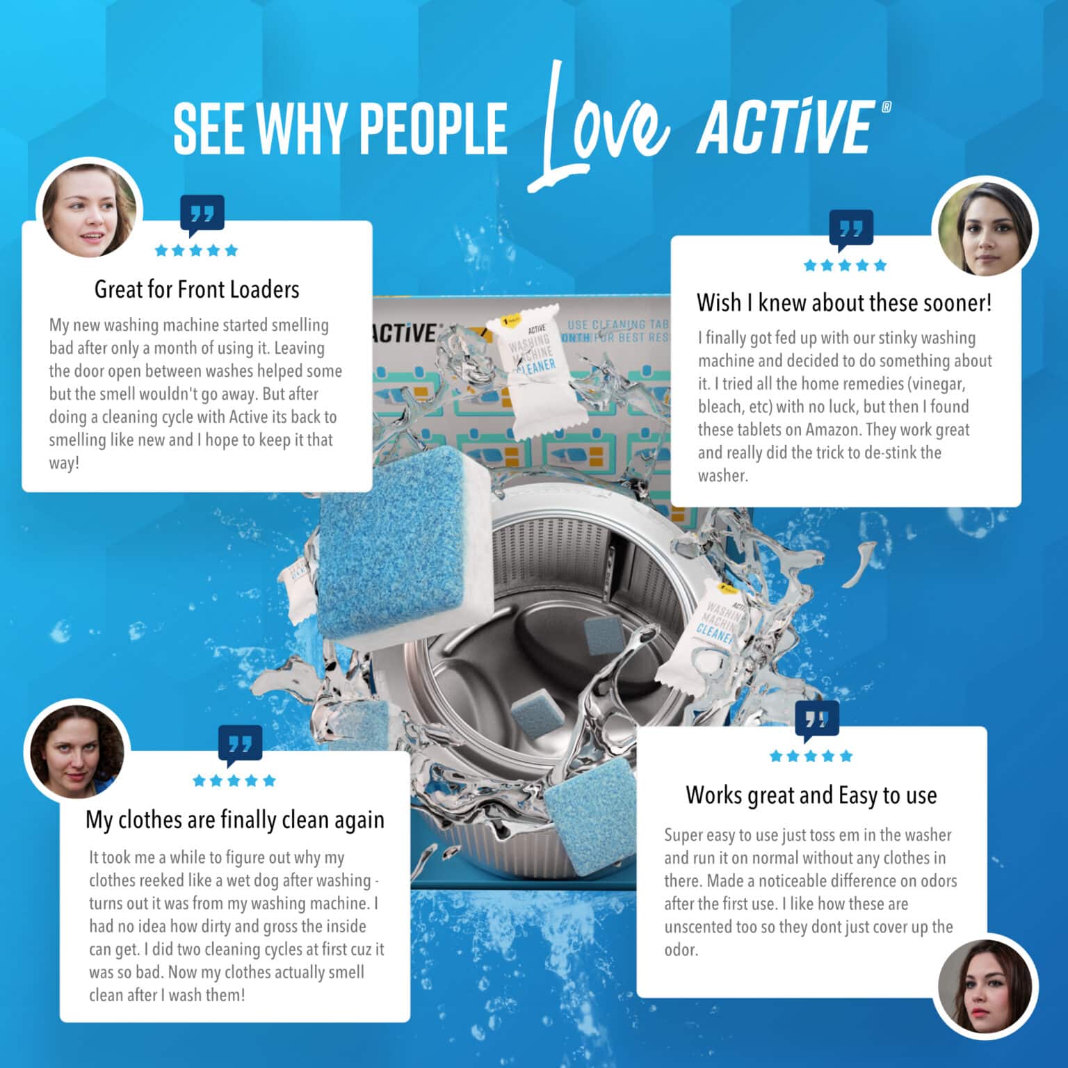 Washing Machine Cleaner Active active cleaners utilize enzyme and oxidant blends to remove odors from clothing, appliances and more. if you want to clean your washing machine quickly yet efficiently, we like the active washing machine tablets. These tablets are easy to use. for those who want to avoid liquid or powder washing machine cleaners, active tablets are the best option.. Washing Machine Cleaner Active.